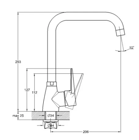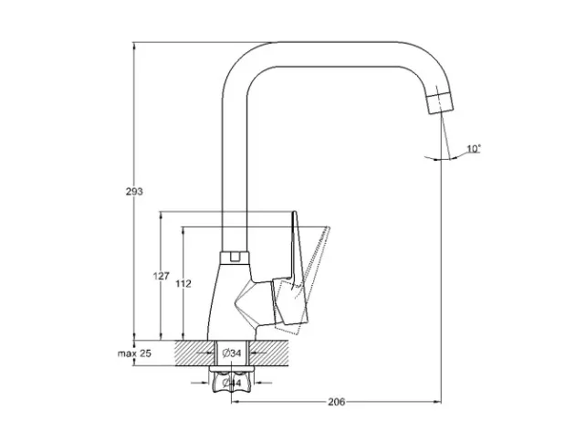 • Излив: поворотный, длина 20 см. высота 19 см.