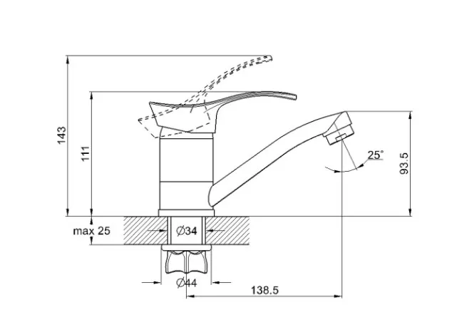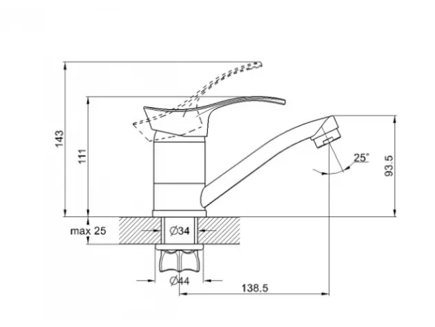- Излив поворотный. Длина 138 мм, высота 94 мм. Аэратор люкс.